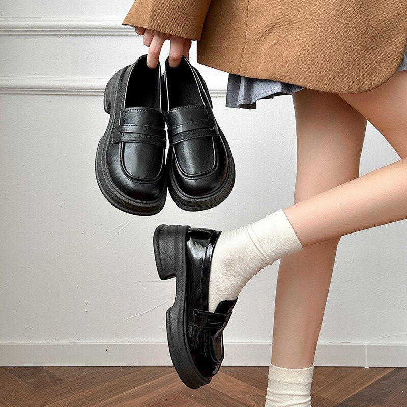 英倫時尚一脚蹬增高小皮鞋